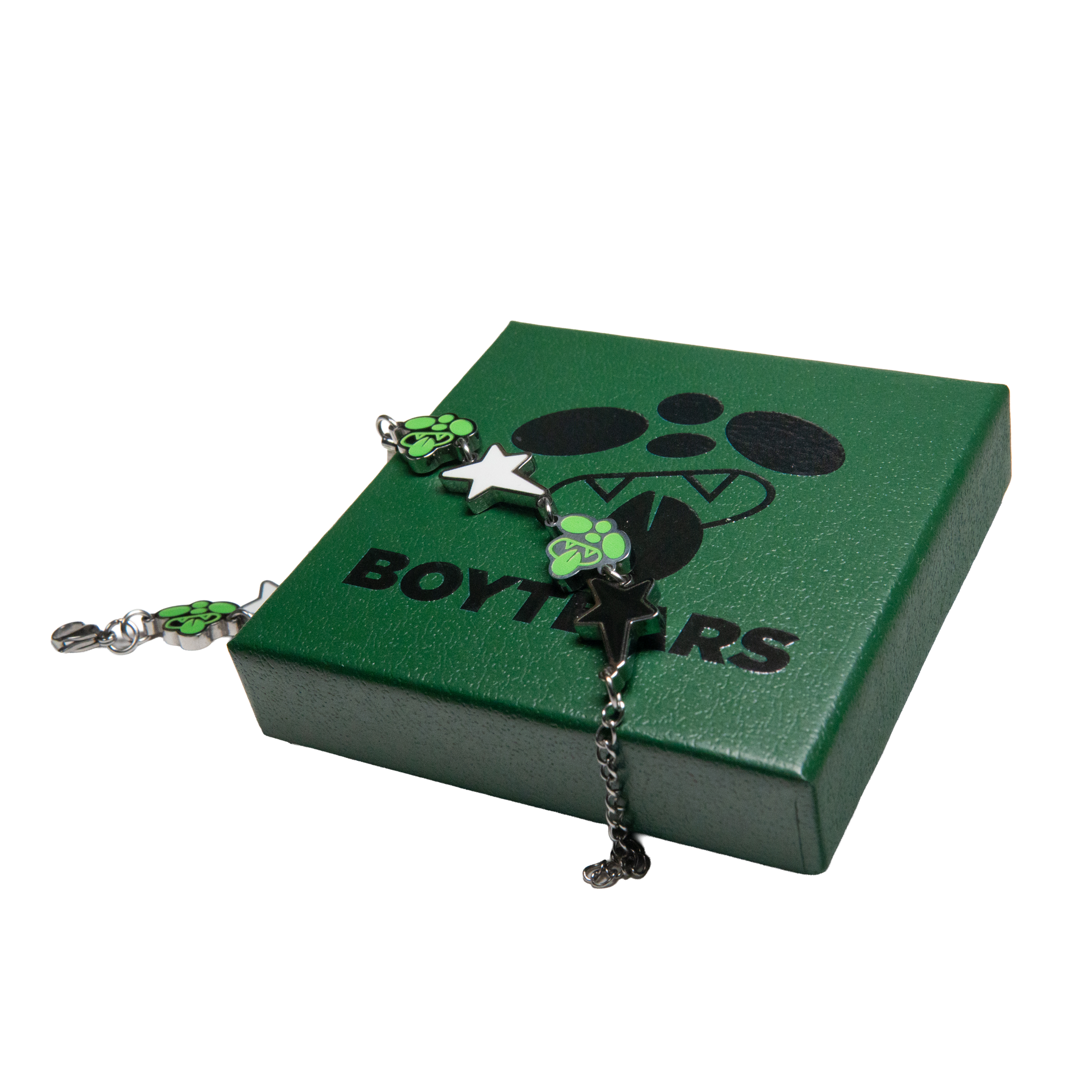 7" - 9.75" x 0.5" ENAMEL CHARM BRACELET ON ADJUSTABLE STAINLESS STEEL CHAIN.